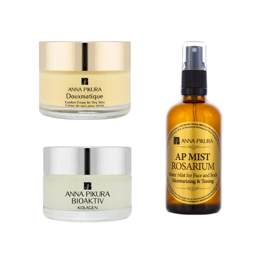 Kolagen nałożyć na czystą skórę zwilżoną hydrolatem różanym AP Mist Rosarium i lekko go wklepać. Kolagen wchłania się bardzo szybko (około 3-5 minut), pozostawiając na skórze cienką warstewkę, i powoduje lekkie napięcie skóry. Pozostawienie preparatu na skórze bez wklepywania go daje bardzo często uczucie silnego napięcia skóry (szczególnie na twarzy), a niewchłonięta warstwa preparatu może się łuszczyć. W takim przypadku należy ponownie zwilżyć skórę hydrolatem i wklepać pozostałość preparatu. Po wchłonięciu się kolagenu nałożyć biokrem botaniczny ANNA PIKURA, odpowiednio dobrany do potrzeb skóry.